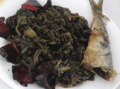 Lavamos bien y troceamos las camarrojas y las aeclgas; las ponemos a cocer en agua durante 1 hora aproximadamente y escurrimos.